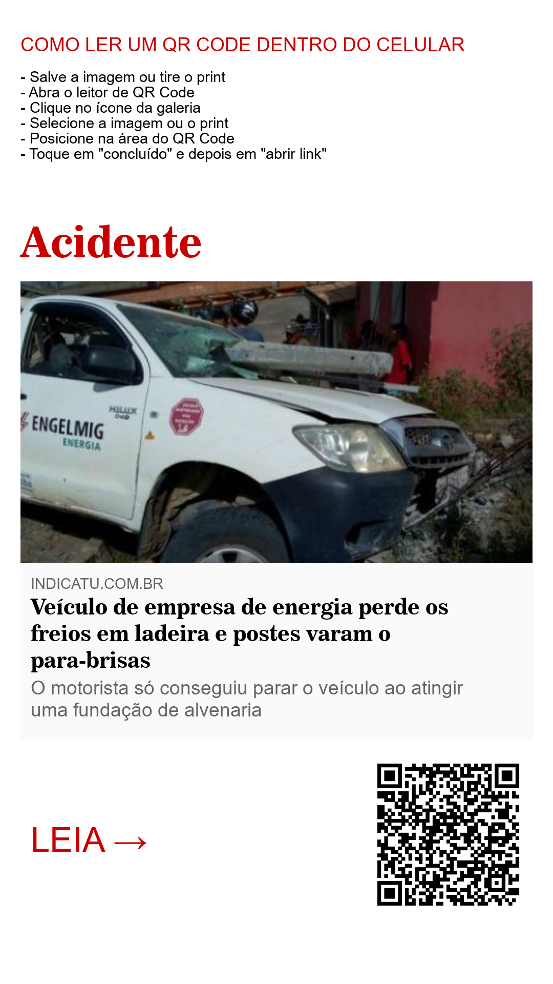 Segundo informações, o veículo perdeu os freios e desceu ladeira abaixo, colidindo com a fachada de uma loja e deixando a mesma destruída. Com o impacto da batida, os postes que eram transportados na carroceria do veículo escorregaram para dentro da cabine, varando o para-brisas.